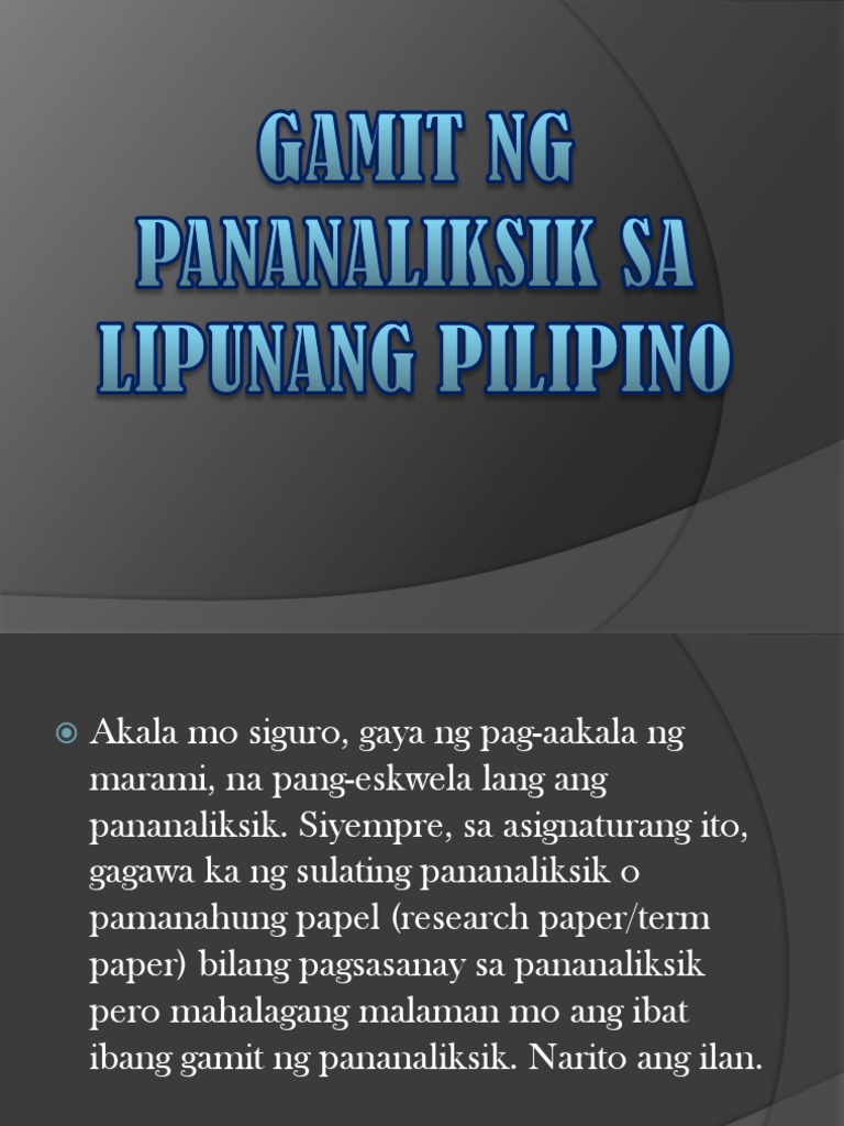 Gamit Nga Pananaliksik Sa Lipunang Pilipino