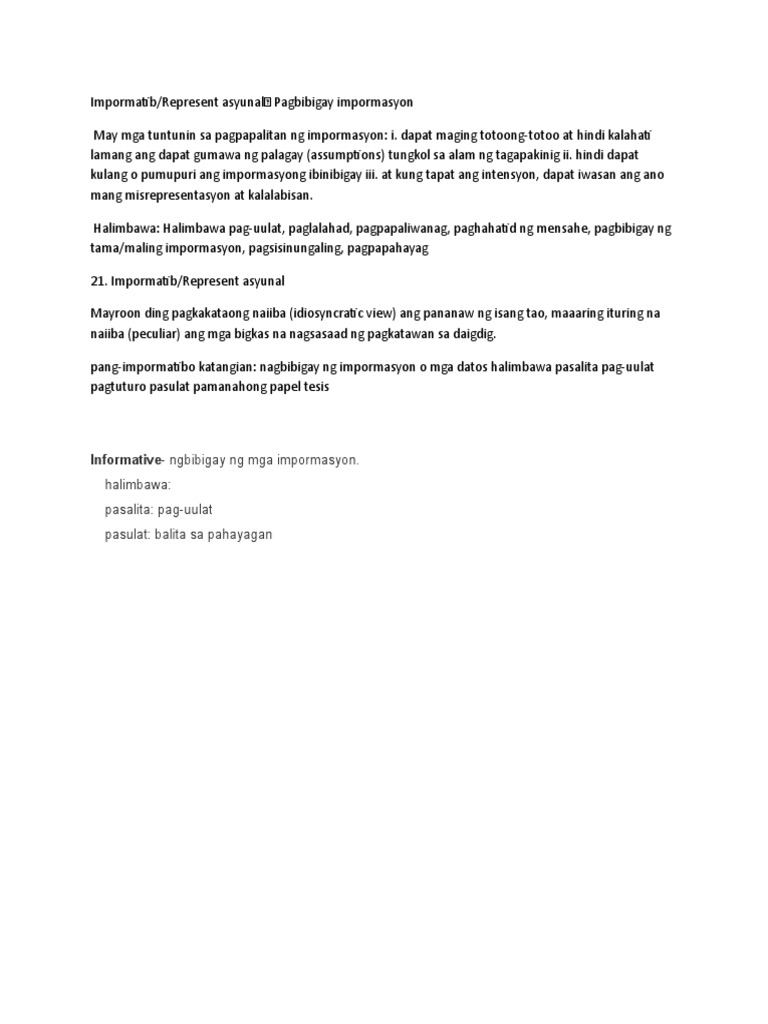 Taong Panuruan In English Tagalog To English Translations. Ano ang impormatib na sanaysay. Halimbawa ng wikang impormatib.