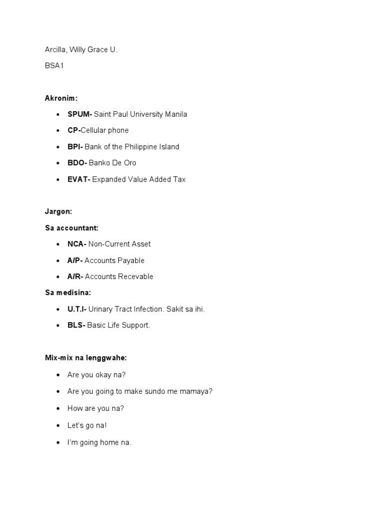 Halimbawa Ng Jargon Halimbawa Ng Trabaho
