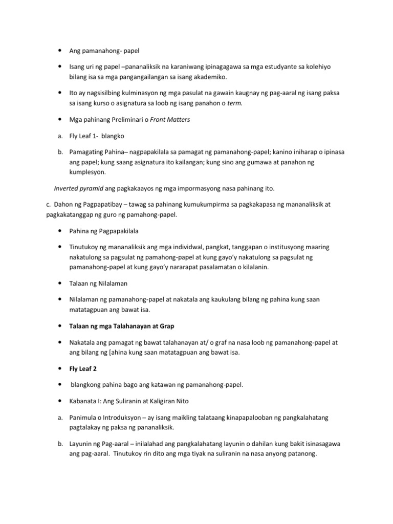 1 See answer leahcam leahcam Ang halos lahat ng mag-aaral ay dumadaan sa estado ng pag-aaral kung saan sila ay namomroblema sa kung ano o tungkol saan ang kanilang magiging paksa para sa kanila pamanahong papel o research paper o thesis na kung tawagin. 2932020 HALIMBAWA NG PAMANAHONG PAPEL SA FILIPINO PDF a sample research paper in filipino subject.